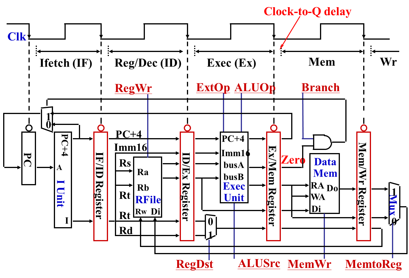 五级流水线的数据通路: